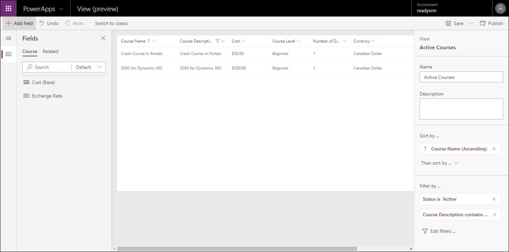 The new View Editor is a lot more intuitive and you can finally adjust the column widths, just like you could in Excel 97! One thing I really like is the fact that it will display actual data from your CDS so you can see your filtered results as well as adjust the columns to your actual data sizes!