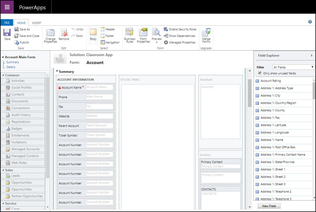 The Form Designer really has not changed much over the years. While it also recently got the “PowerApps” logo, but overall, the designer tool is a tool that Dynamics 365 configurators have gotten quite comfortable with.
