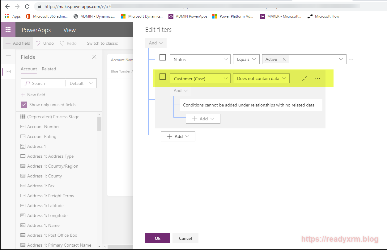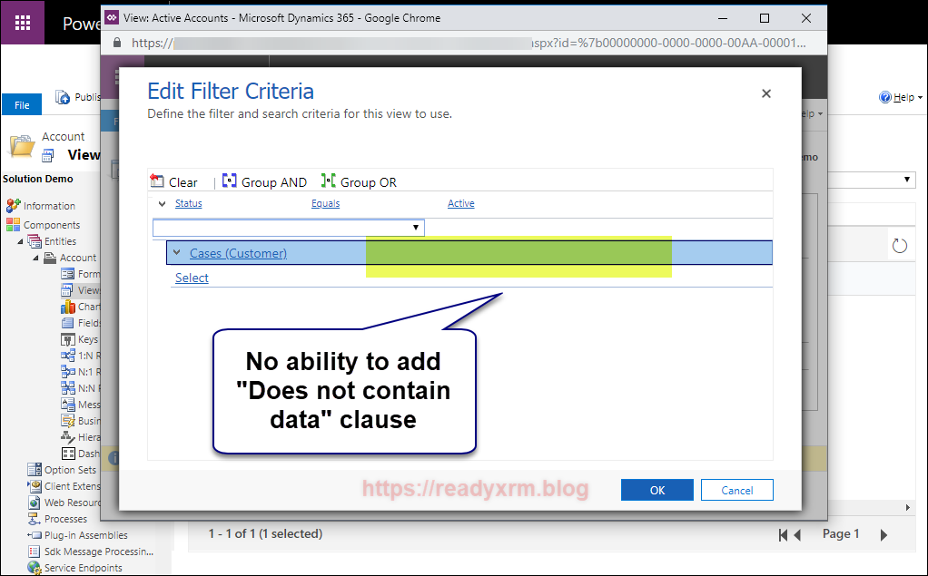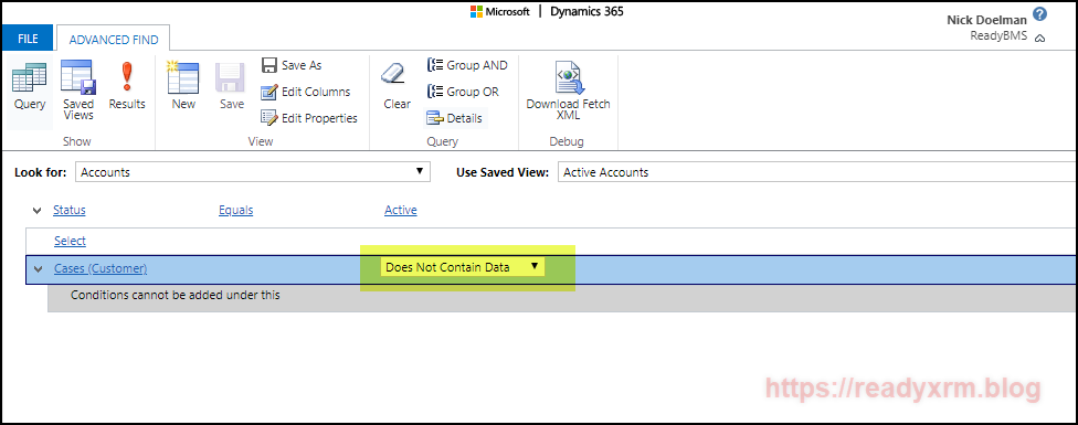 For example, if we wanted to create a view showing Accounts that did not have any related cases, we could not create a system view to replicate an Advanced Find.