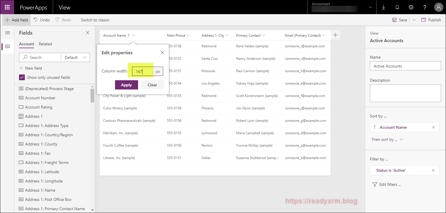 The new view designer will actually show live data from your Dynamics 365 and/or your CDS database. This provides some features such as being able to adjust the width of your columns based on actual data and also see the results of your filtering. These might be small features but will save hundreds of clicks and navigations over time, making it more efficient to design and build your views.