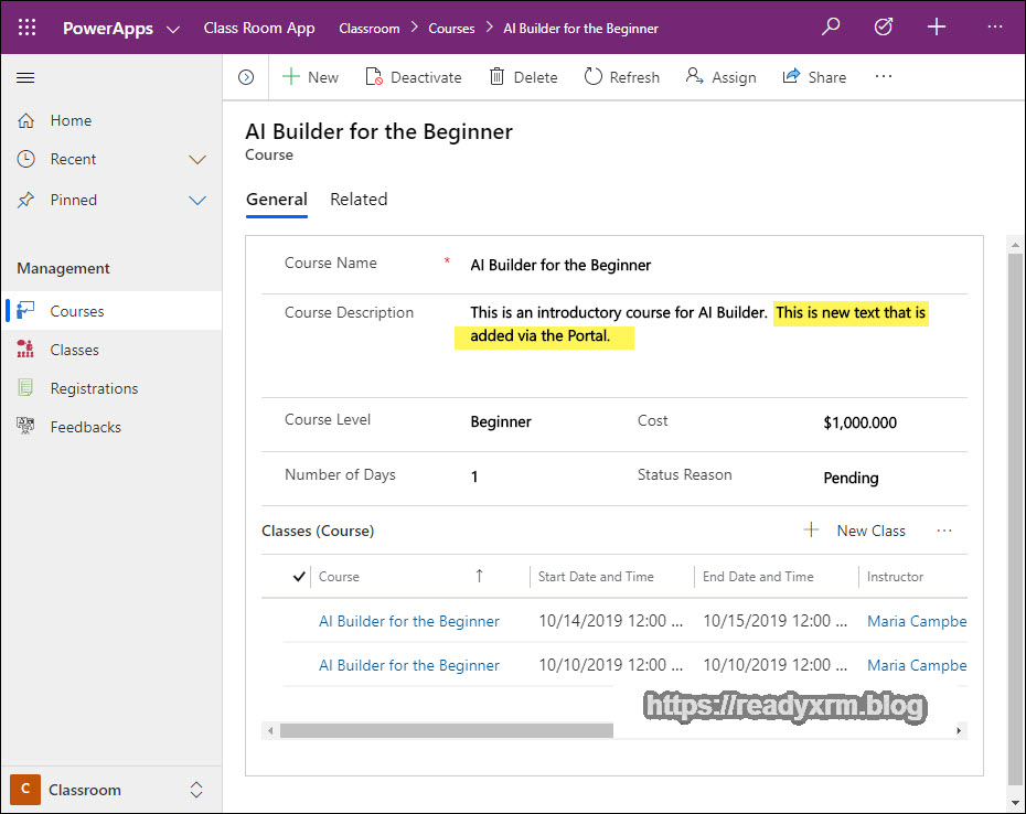 <!--Web Template to display a list of records, allow user to update course detail and update via Power Automate Http request-->