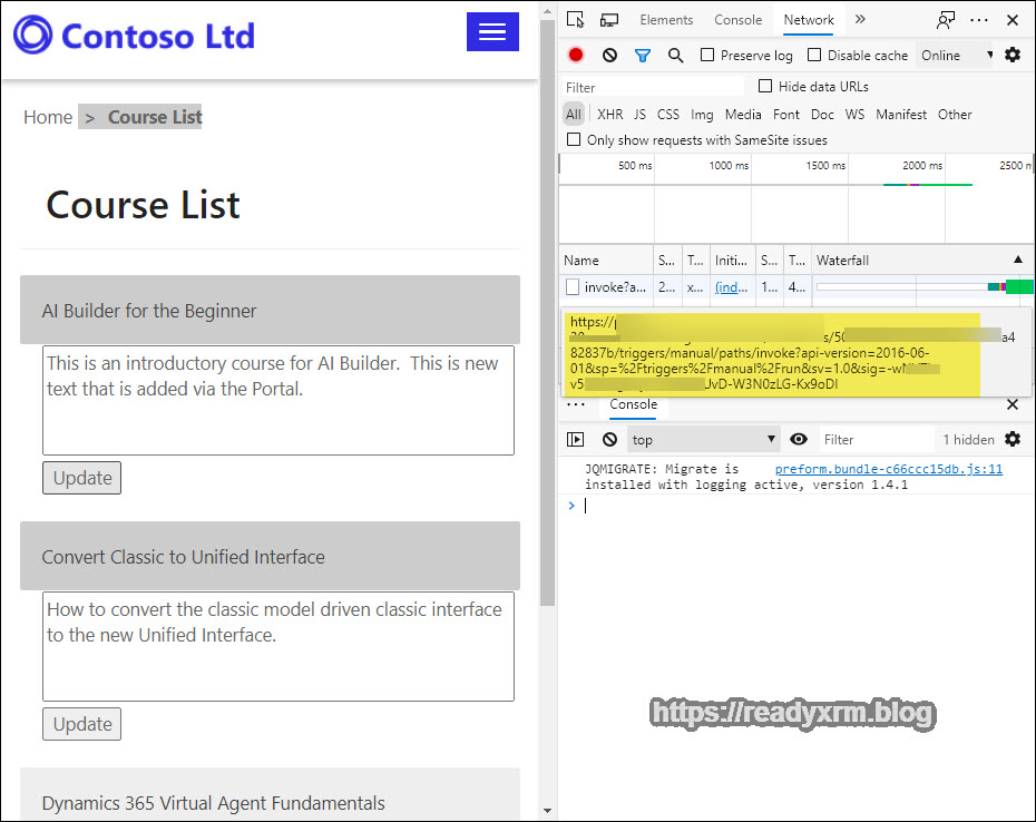 The following post outlines the steps I took to trigger a Power Automate flow from a portal web page that will update a record in CDS (common data service) without needing to submit a form or navigating away from the page. Power Automate effectively acts as the Power Apps Portals “companion app”.