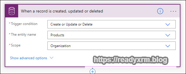 The trigger will be a Common Data Service (current environment) whenever a record is created, updated or deleted. This means that any change in products, additions or deletions will create a brand new static web page.
