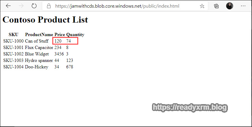 If you make changes to any of the data in the Power App (create new records, update quantity or price) this will kick off the flow and create a new static web page.