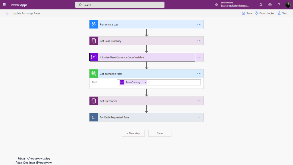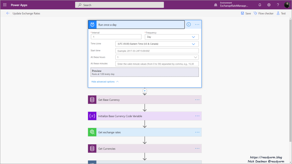 Now that we have our base currency and a series of foreign currencies setup in Dataverse, we can create a Power Automate flow to run once a day to update the currencies.